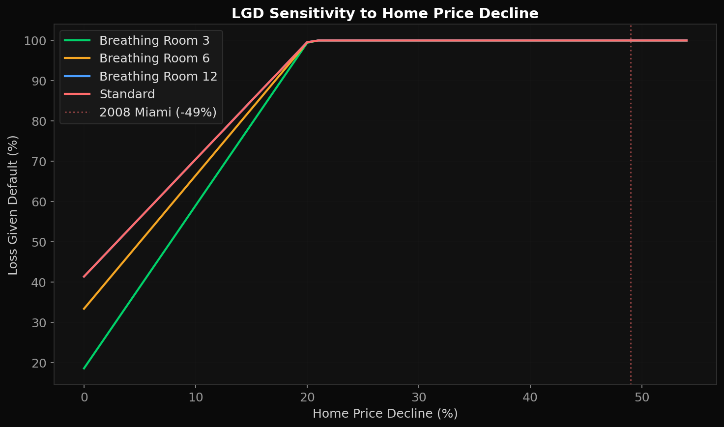 - LGD assumes full REO discount even though lien recovery may be negotiated pre-foreclosure