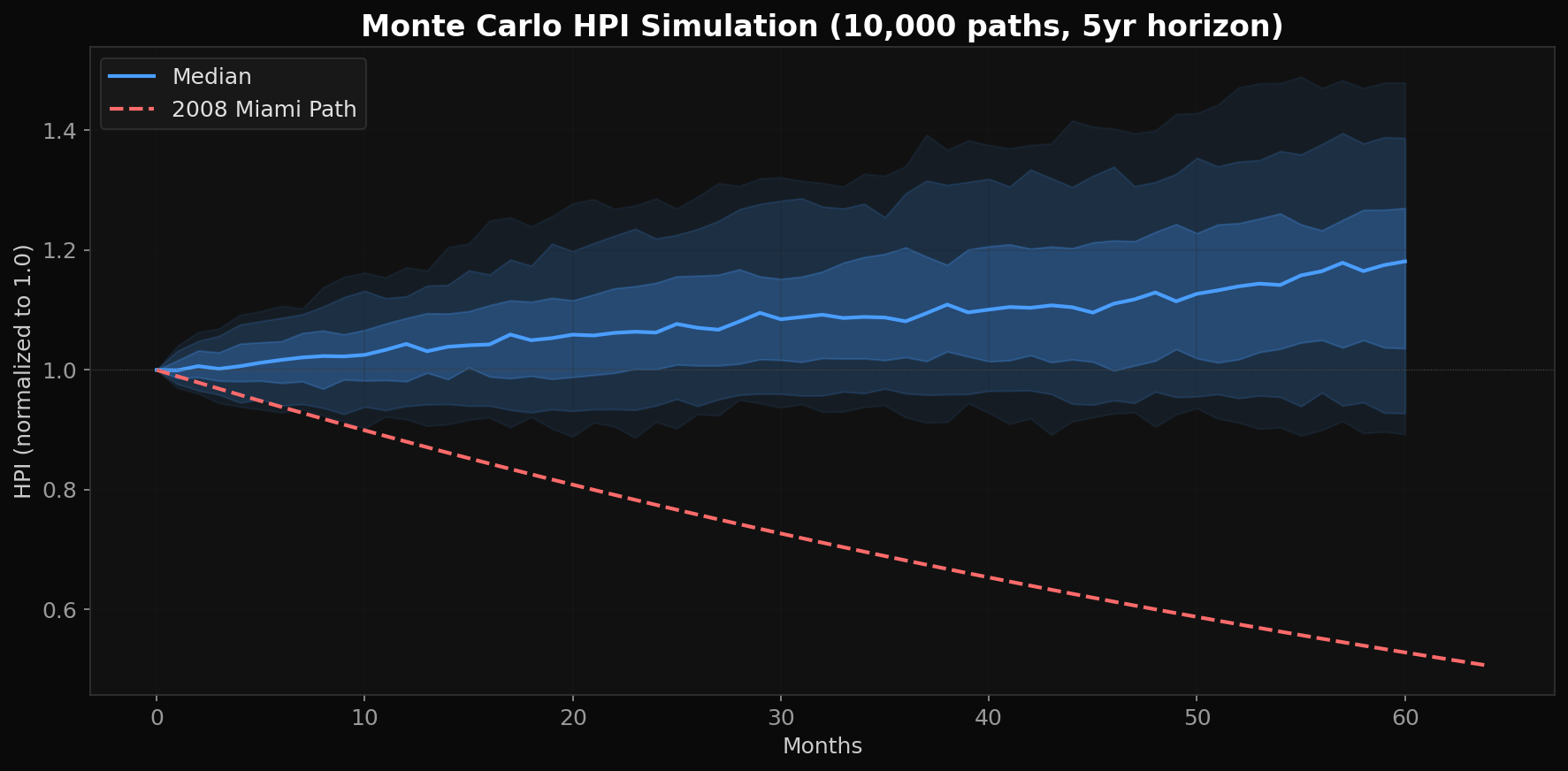| GBM drift (mu) | 5.25% | Case-Shiller Miami 1987-2025 |