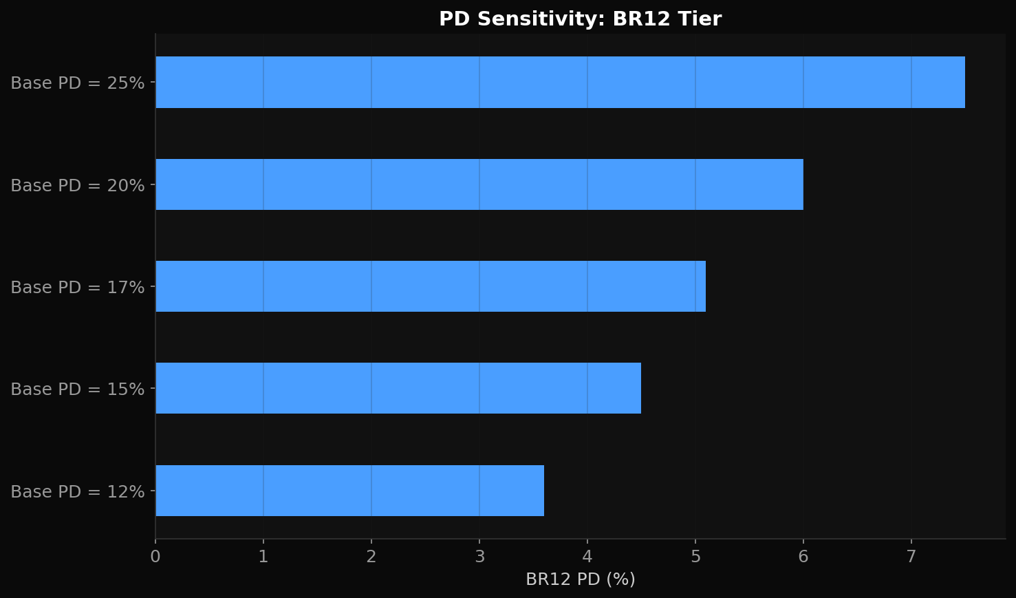 Figure 6: Probability of Default sensitivity to base PD and cure rate assumptions